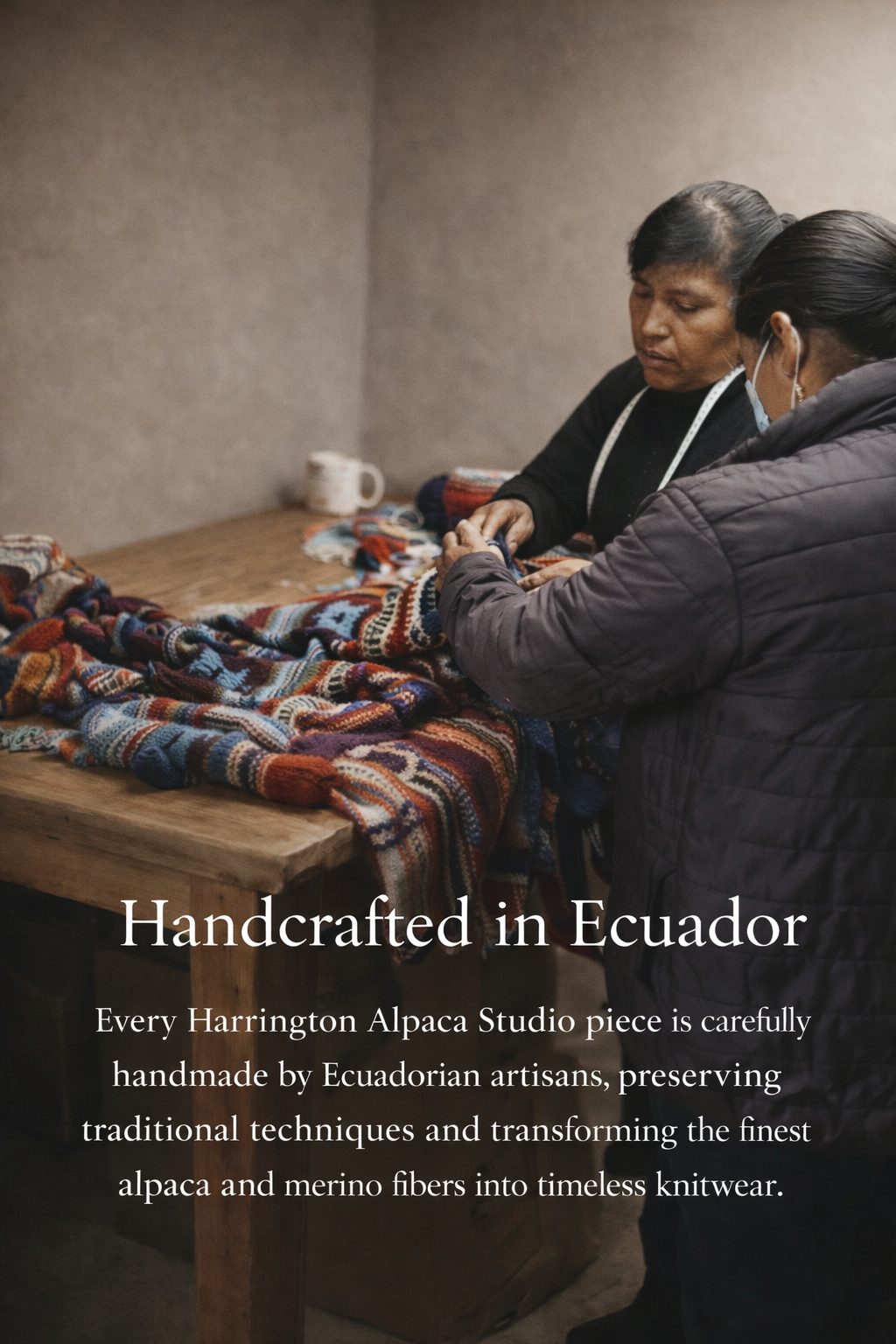 Each garment is handcrafted by Ecuadorian artisans, and custom orders are typically completed within 2–3 weeks, depending on material availability.