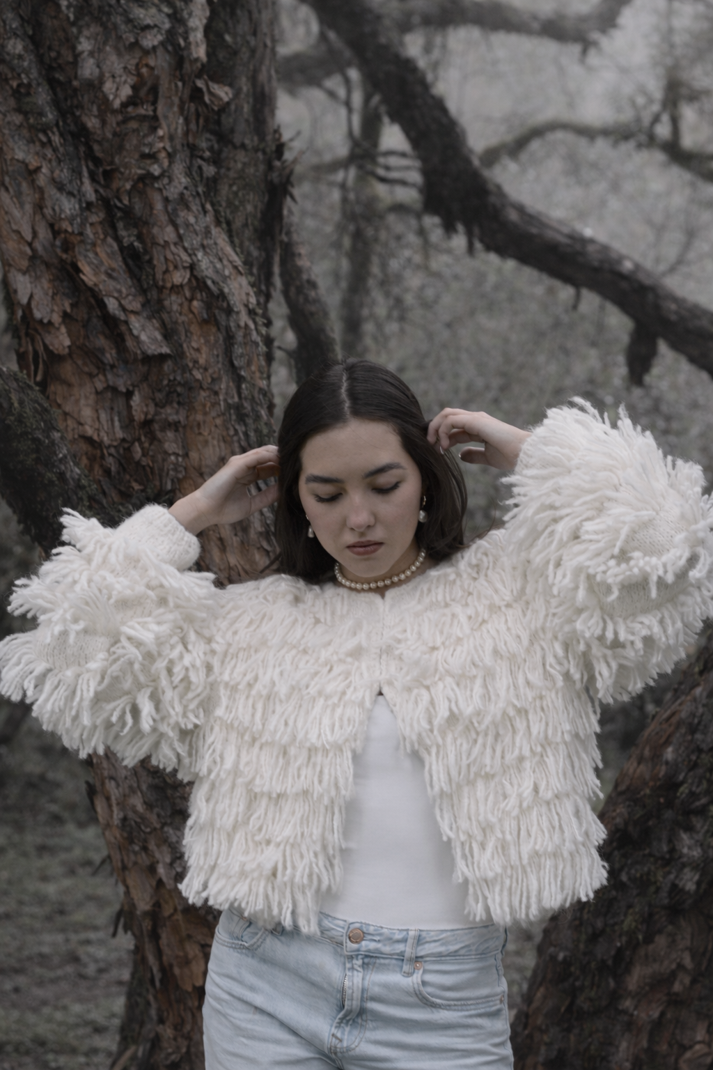 This baby alpaca sweater is individually handcrafted in Ecuador, featuring a sculptural fringe knit that moves with subtle fluidity. Incredibly soft and naturally insulating, it envelopes the body with warmth while maintaining a weightless feel.